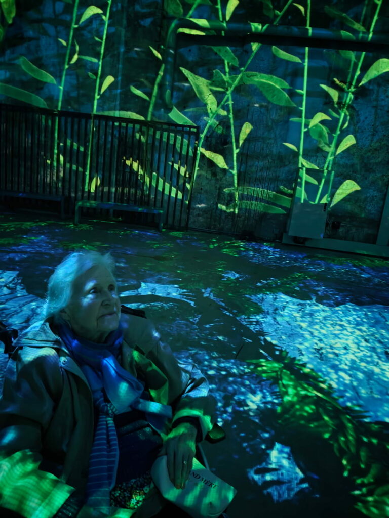 En premier lieu, les résidents ont plongé dans un univers visuel et sonore spectaculaire. D’une part, les jeux de lumières ont mis en mouvement les courants marins, les fonds océaniques et les créatures aquatiques. D’autre part, la musique a accompagné chaque projection avec douceur. Ainsi, les images monumentales ont enveloppé les participants dans une atmosphère apaisante. En conséquence, chacun a pu ressentir un profond sentiment de calme et d’émerveillement. Cette expérience sensorielle stimule l’attention. Elle favorise l’émotion. Elle crée des souvenirs durables au sein de l’ehpad Le Temps de Vivre à Grignols, en pleine campagne mais proche de la ville.