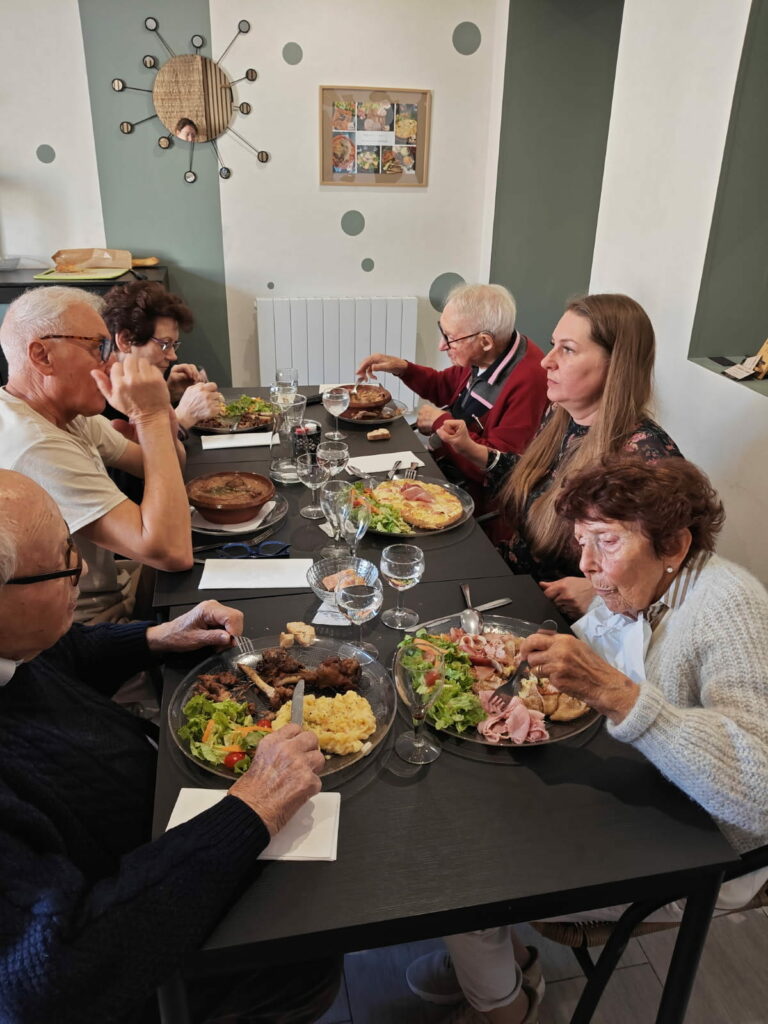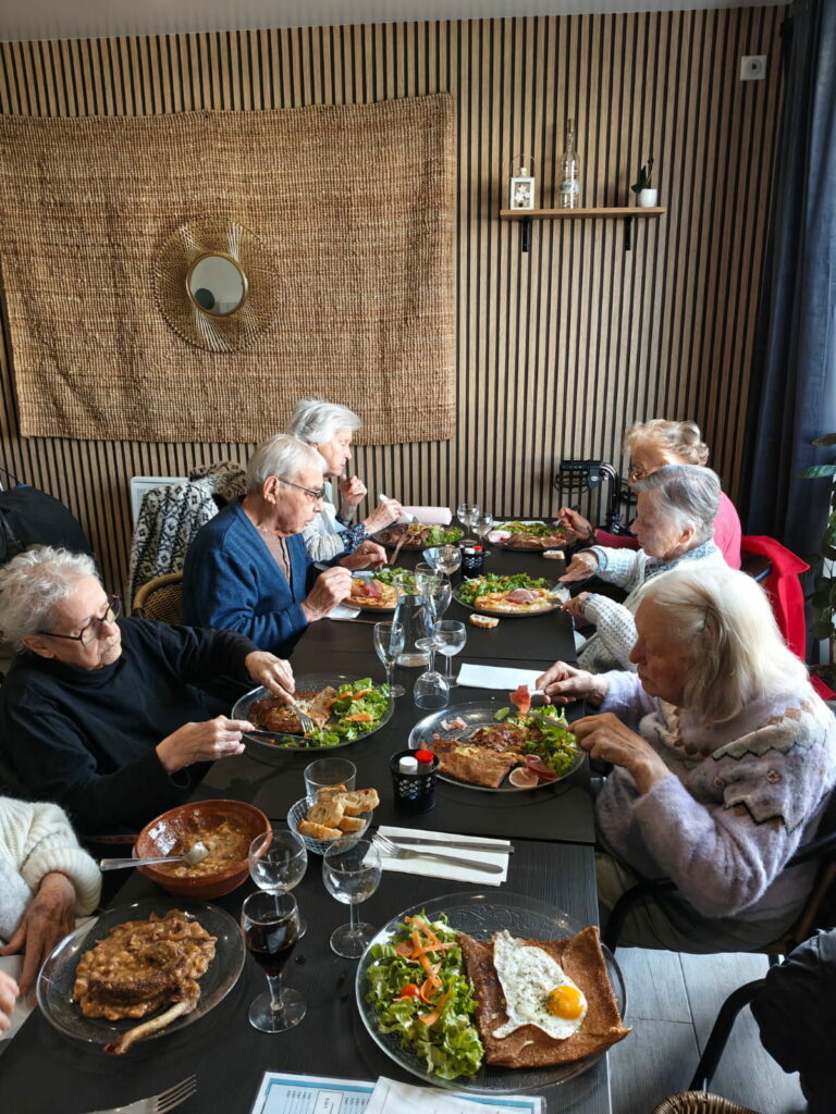 En premier lieu, les résidents ont découvert une table chaleureuse et authentique. D’une part, les plats traditionnels ont ravi les papilles. Cassoulet, canard confit, tourtasses et bourriols ont composé un repas généreux. D’autre part, les échanges autour de la table ont renforcé la convivialité. Ainsi, chacun a profité d’un véritable moment de plaisir. En conséquence, cette sortie restaurant favorise le bien-être et stimule l’appétit. Elle contribue aussi à maintenir le lien social au sein de l’ehpad Le Temps de Vivre à Grignols, situé en campagne mais proche de la ville.