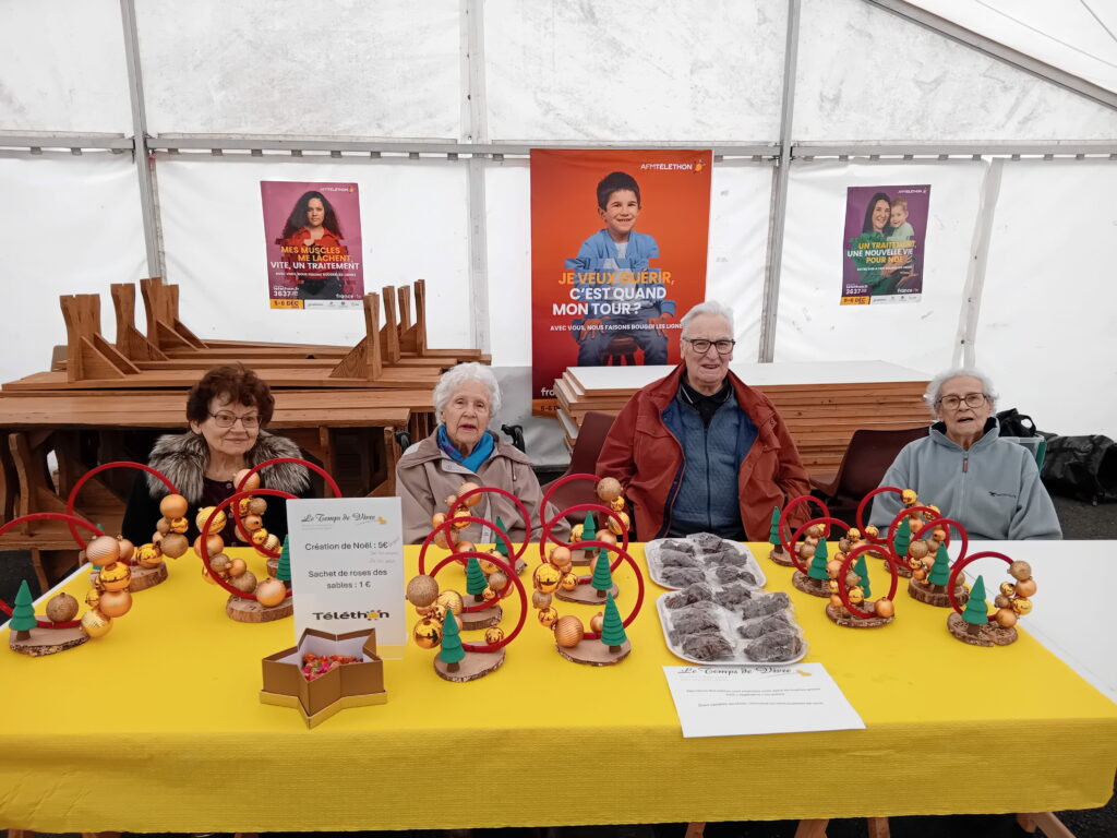 En premier lieu, les résidents ont préparé avec soin les produits proposés sur le stand. D’une part, ils ont confectionné de jolies décorations de Noël. D’autre part, ils ont réalisé de délicieuses roses des sables, très appréciées des visiteurs. Ainsi, chaque création a permis de valoriser le savoir-faire et l’implication des aînés. En conséquence, cette préparation collective renforce l’estime de soi. Elle favorise la coopération. Elle donne du sens aux animations proposées au sein de l’EHPAD Le Temps de Vivre à Grignols, situé entre Lot-et-Garonne et Landes, au cœur des landes de Gascogne.